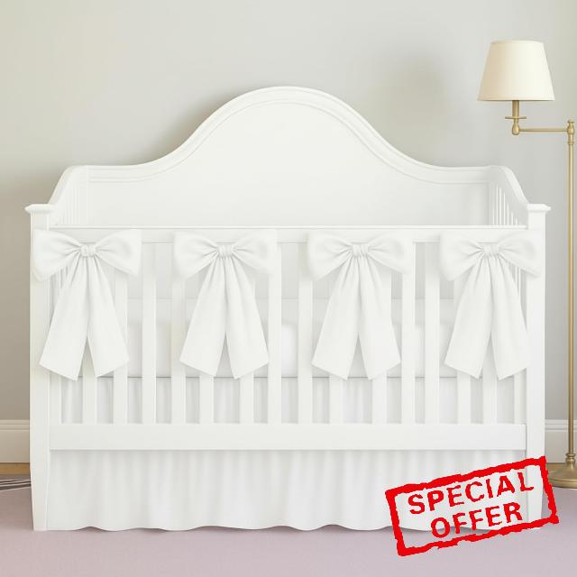 White Crib Bed Skirts with 4 Large Cot Bow Baby Crib Skirt for Boys Girls