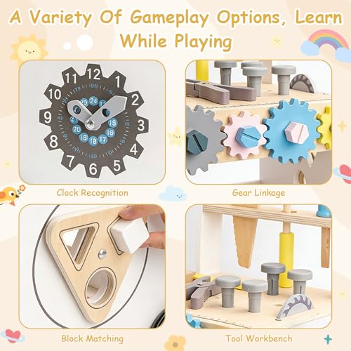 - 【Interactive Learning Activities】Equipped with shape sorters, a functioning clock, and various tools, this baby walker encourages cognitive growth and sensory exploration, making it an ideal learning toy for boys and girls aged 10 months to 2 years.