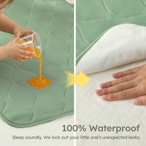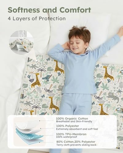 - 4 Layers of Protection: This bed wetting sheets is composed of a breathable and skin-friendly organic cotton outer layer, a soft polyester fiber filling layer, a noise-free and fully breathable TPU waterproof layer, and a non-slip bottom, dedicated to protecting kids sleep and showing care.