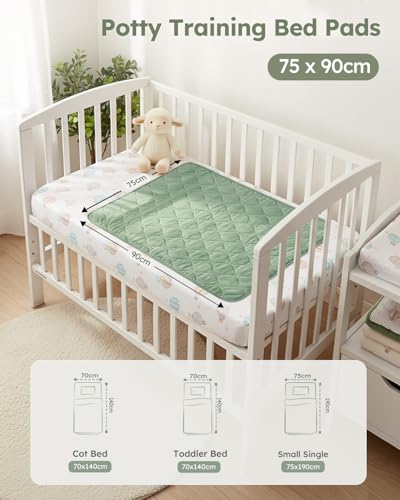 - Suitable Size: The 75x90cm potty training bed sheet is suitable for all single, toddler and cot beds. Its anti-slip bottom design ensures that the urine pad does not shift, allowing your baby to sleep peacefully without the need for you to repeatedly tidy up at night.