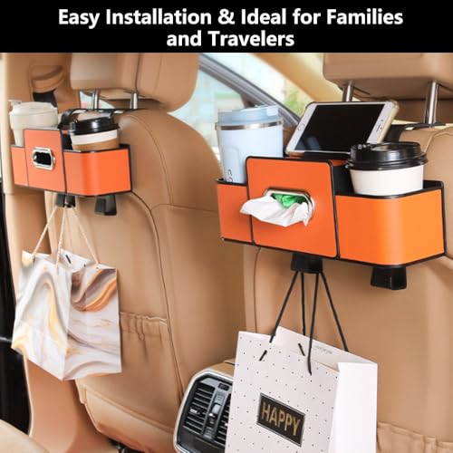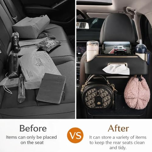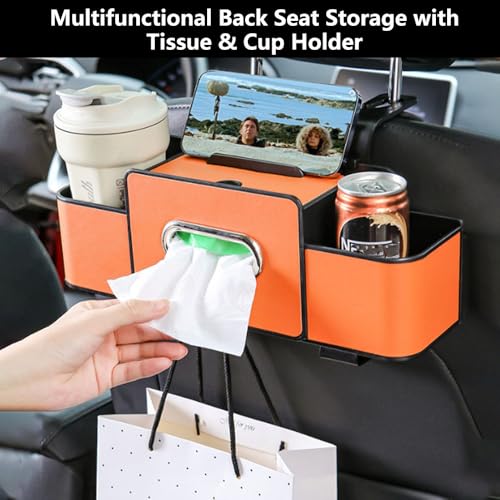 - Multifunctional Back Seat Storage with Tissue & Cup Holder: Featuring a built-in car organizer with tissue holder and car organizer with cup holder, this multifunctional car organizer and storage box is ideal for families with kids or long trips. The smart layout allows quick access to tissues, drinks, and small items, making it a truly smart car organizer.