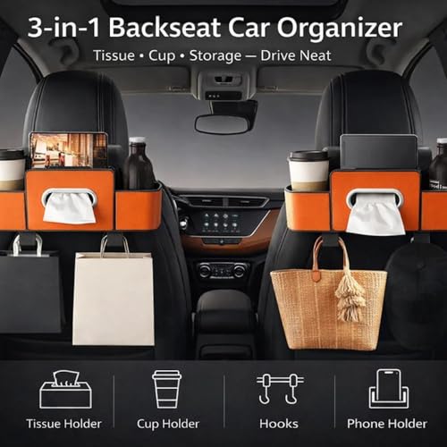 - 3-in-1 Backseat Car Organizer: This 3-in-1 car backseat organizer works as a car organizer and storage box for back seat, combining compartments for tissues, cups, kids’ water bottles and hanging bags. Designed as a drive neat organizer, it helps reduce clutter and keeps daily essentials within easy reach for both drivers and passengers.