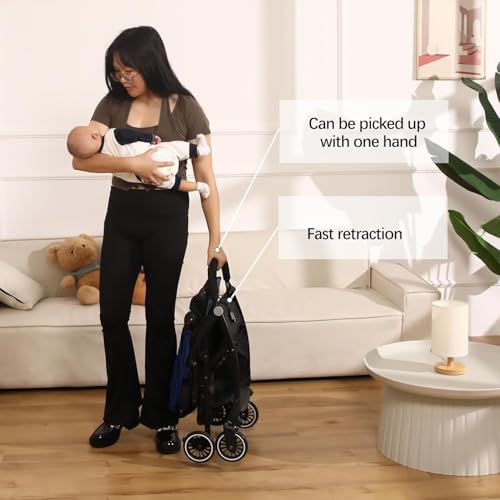 Alivio Folding Baby Stroller Pushchair for Baby Kids, Toddlers, Kids Stroller Trolley with Mosquito Nets & Shoulder Strap, Anti-Friction Wheels Baby Cart (Navy Blue)