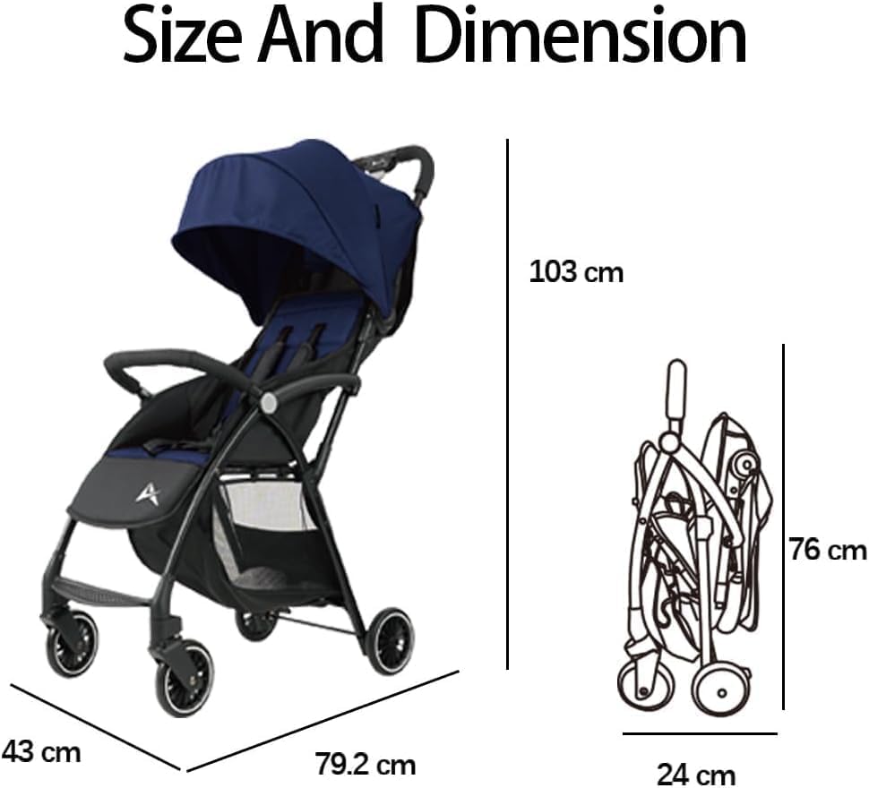 - Adjustable Features: The stroller features adjustable elements, such as a reclining seat and adjustable canopy, allowing you to customize it to your child's comfort and needs. Open Size: 79.2 x 43 x 103cm and Folding Size: 24 x 76cm.