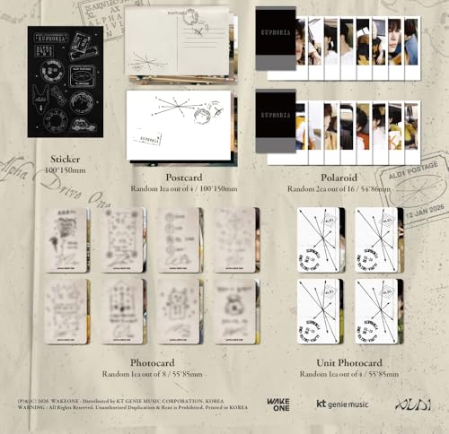 Mini CD-R & Envelope + 124p Photobook + Photocard (Random 1 out of 8) + Unit Photocard (Random 1 out of 4) + Postcard (Random 1 out of 4) + 2 Film Photo (Random 2 out of 16) + Constellation Postcard + 12p Travel Journal + Sticker