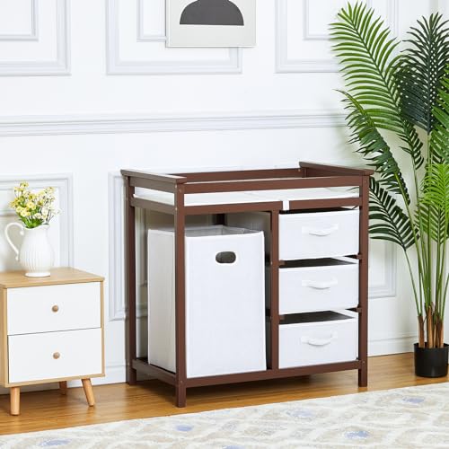 - 【Spacious Storage Capacity】Featuring 4 fabric storage bins with large capacity, it allows for classified storage of diapers, wet wipes and other baby essentials. Easy to access, keeping your changing table neat and clutter-free.
