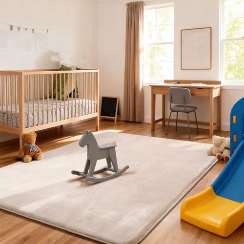 - Material: The surface of the baby play mat is made of coral velvet on the surface, Sponge filling, soft and highly resilient, with good breathability. Area rug It is ultra soft when you touch, and super comfy under your feet or to lay on. Kids bedroom rug not easy to shed, does not pill, does not fade, It protects your family from fall injury, reduces noise