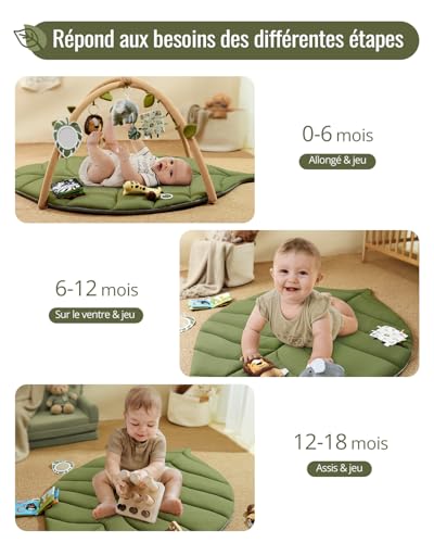 - Extra Large & Super Comfortable: 53 x 37 x 1 inches baby activity mat provides a larger and safer play space for baby to roll over and sit up. It's made from a softer Roman Velvet surface, safe and comfortable for baby's skin. And the back is non-slip to prevent sliding on the floor. The leaf play gym can also be removed individually and used as a super-cute backdrop for monthly photos or as an everyday play mat
