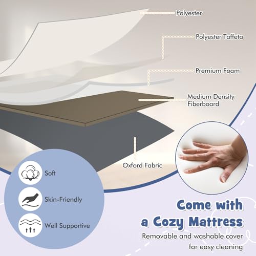 - 【Come with a Cozy Mattress】The soft, skin-friendly and well supportive mattress is made with polyester, polyester taffeta, premium foam, medium density fiberboard and oxford fabric, creating a soothing sleep environment. More, the removable and washable cover is helpful for easy cleaning.