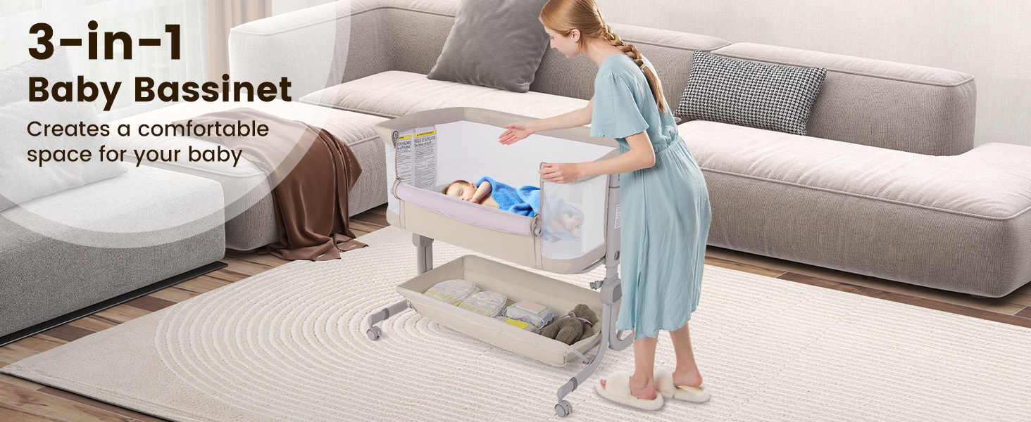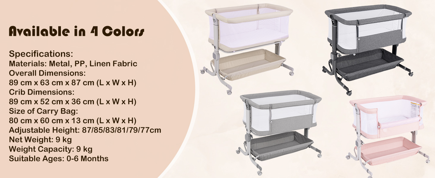 - 【User-Friendly Features】Equipped with the zippered cover design, the fabric cover is removable for regular cleaning. More, the bottom storage shelf is designed for within-reach storage for baby essentials, such as toys, diapers, etc. And our bedside cot complies with EN71 for absolutely safety.