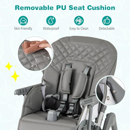 - 【Easy to Clean】Featuring a removable food tray and a skin-friendly, waterproof PU seat cushion, this high chair simplifies cleanup. The detachable components allow for quick, hassle-free cleaning after messy meals, ensuring a hygienic environment for your child's every use.