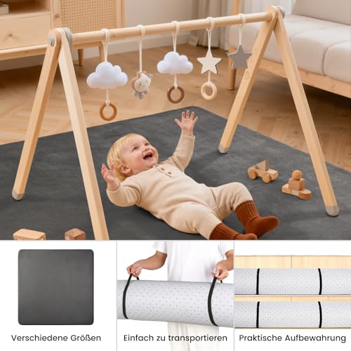 - Versatile and versatile: Our crawling blanket can be rolled up to save space thanks to two elastic bands and is therefore easy to store and transport. This play mat is suitable for various indoor and outdoor environments – playpens, children's tents, children's rooms, living rooms and even outdoor playgrounds. Whether crawling, playing, telling stories or sharing activities with your child, this rug provides plenty of space for your baby's development.