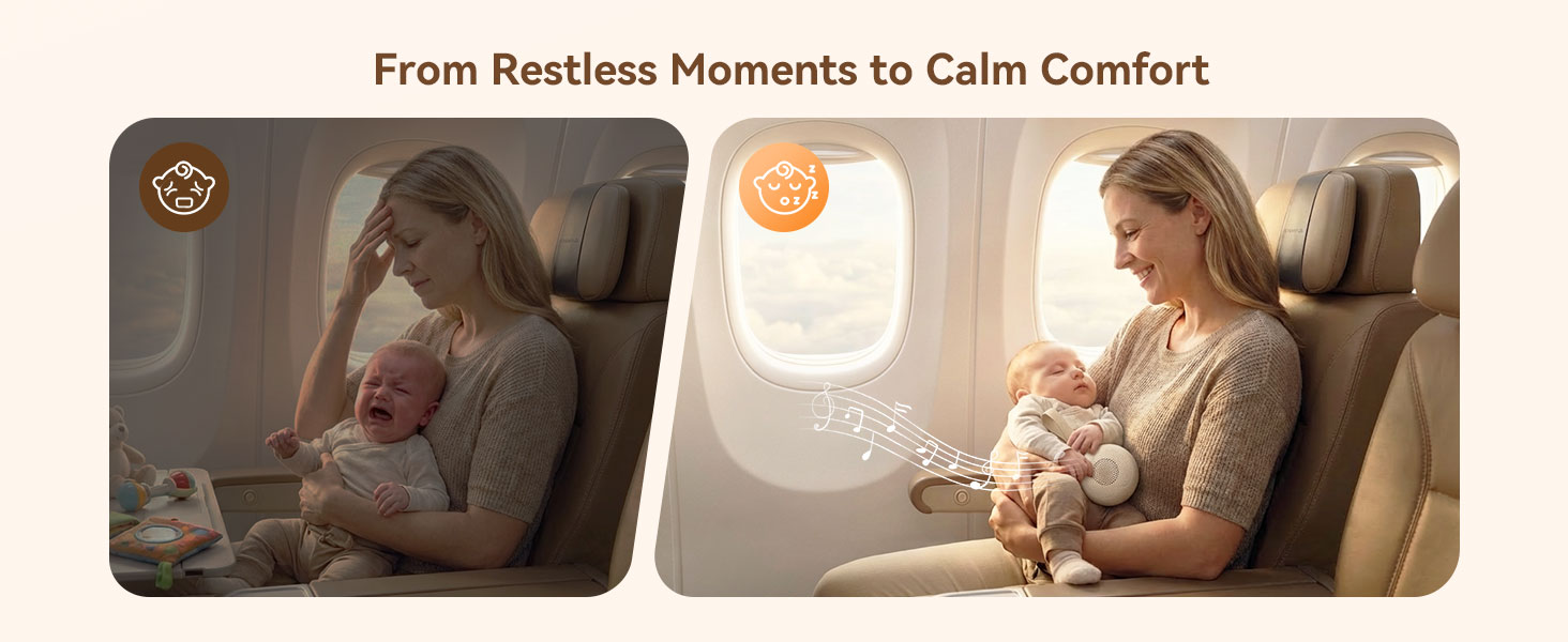 - , : No app, Wi-Fi or account required. This portable sound machine baby works straight out of the box. Just turn it on and let familiar sounds do the rest. A steady presence for sleep, backed by a 365-day warranty, it offers reliable calm parents can trust for everyday routines.