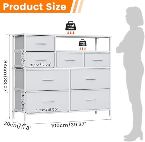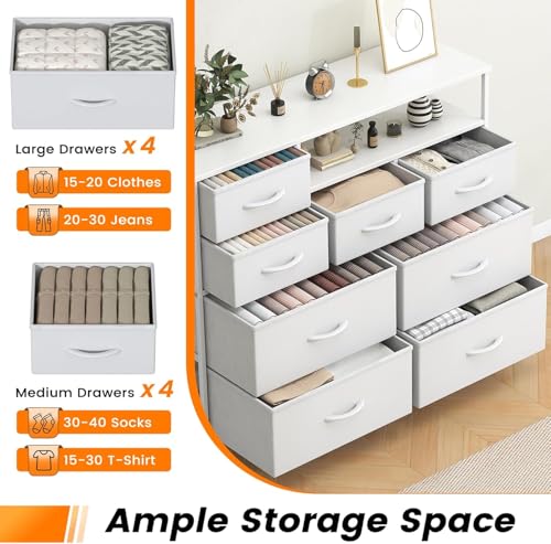 Feonase Chest of Drawers Bedroom, Fabric Dresser with 8 Drawers, Storage Dresser