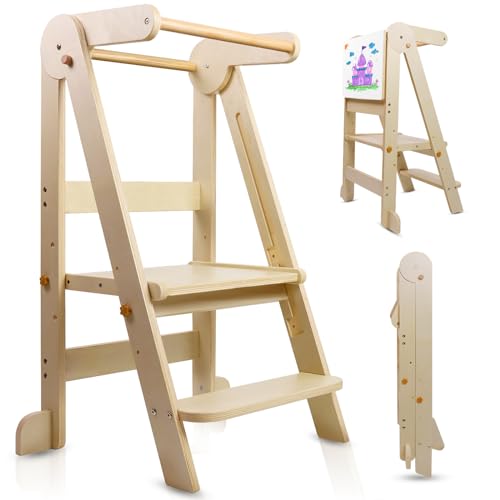 - Innovative Whiteboard Design: Not just a step stool for kids, our foldable children tower are equipped with magnetic whiteboards, which help children develop their hands-on skills while assisting them in their activities, and allows kids to let their imagination and creativity run wildly
