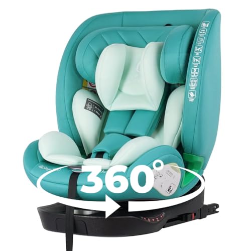 For Your Little One AllStage 360 Group 0/1/2/3 Car Seat, ISOFIX i-Size, 360-Degree Rotation, Rear and Forward-Facing, Birth to 12 Years, 5-Point Harness, 7 Height Positions (Sage Teal)