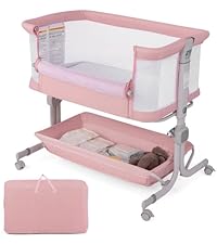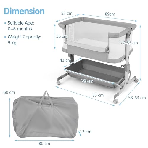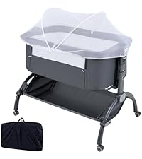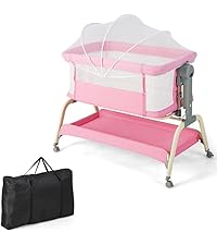 - ✔MORE THOUGHTFUL DETAILS- This portable bassinet features 4 lockable universal wheels for easy movement and a portable bag for easy carrying. In addition, the soft mattress offers super comfort to your baby, while a removable, washable cover makes cleaning a breeze. And our bedside crib complies with EN71 for absolute safety.