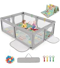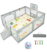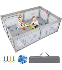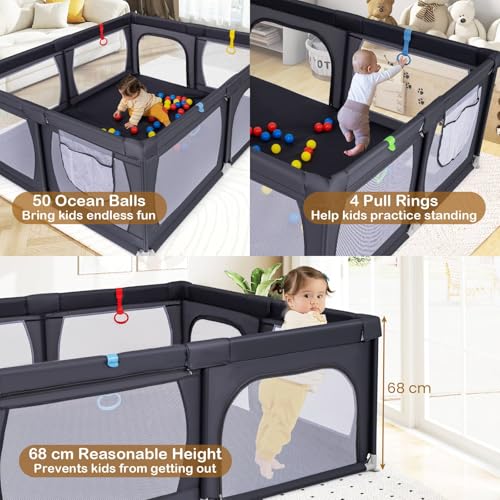 - ✔SPACIOUS PLAY AREA- Measuring 186 x 156 cm with a thoughtfully designed height of 68 cm, this playpen offers a secure environment. The included 4 pull rings help babies develop walking skills, and the set of 50 colorful ocean balls adds playful entertainment.