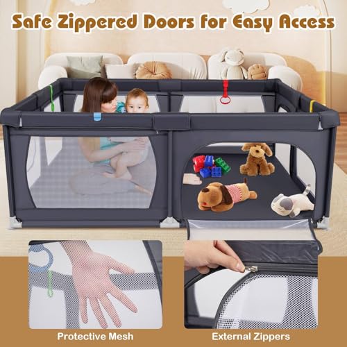 - ✔THOUGHTFUL DETAILS- This kid play center comes with a soft sponge filling for enhanced comfort. Additionally, two zippered doors prevent unwanted escapes, and reinforced corner guards protect your baby from injuries caused by bumps.