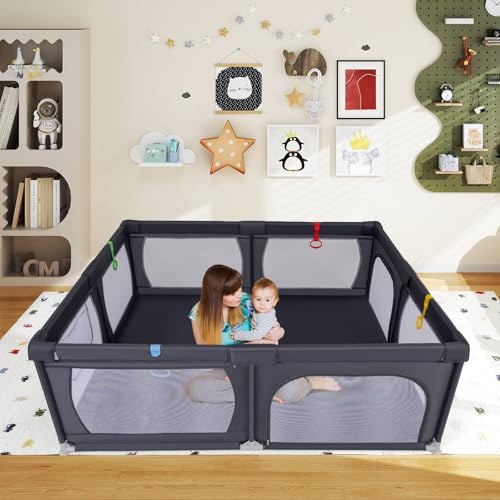 - ✔SAFE AND STURDY MATERIALS- Crafted from high-quality Oxford fabric and sturdy PP plastic connectors, this portable toddler game playpen ensures long-lasting use. The robust metal pipes provide essential support for safety.