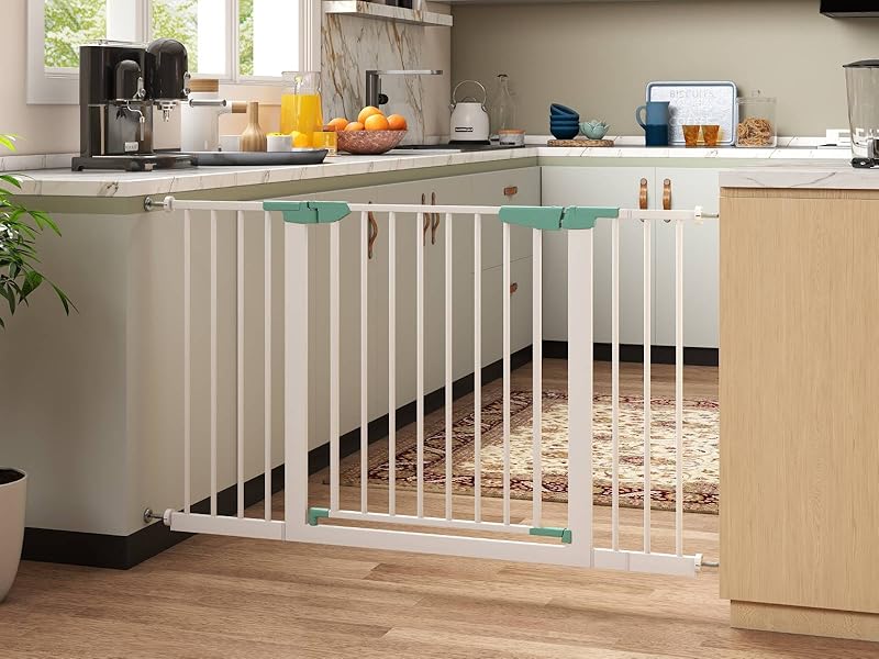- ✔Wide Application- Not only for babies, this safety gate is also great for furry family members. It can be widely used at the top or bottom of the stairs, in the hallways, doorways and other off-limits areas.