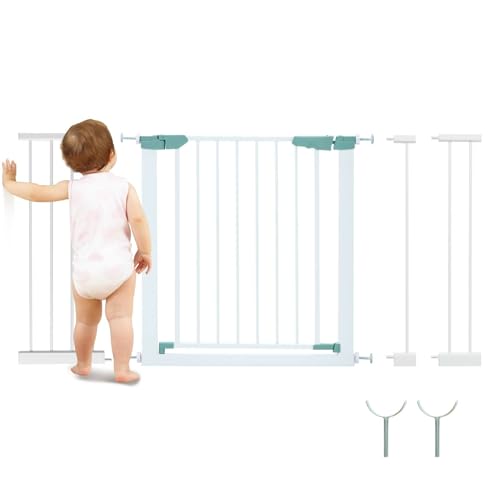 - ✔Customized Width- This baby safety gate comes with 3 extensions that adapt to openings of different widths. The width range is 70-120 cm and the height is 76 cm. Please measure your opening before purchasing.