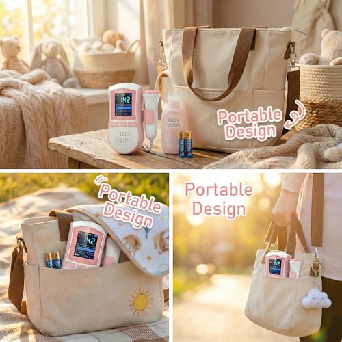 - [Portable and portable design, flexible monitoring] This portable fetal doppler device, powered by AA batteries and compact body, allows ey placement in a delivery bag for on-the-go fetal heart rate monitoring during daily family activities or travel, ensuring convenience and peace of mind for parents.