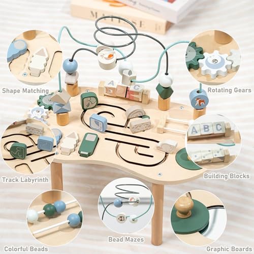- Skill-Building Entertainment: Includes shape matching, track maze, colored beads, bead maze, pattern board, spin blocks, and rotating gears, fostering hands-on learning through play