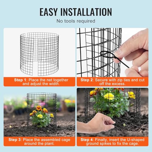 - 【Pre-bent Design】Each piece metal mesh is pre-bent in the installed shape for easy installation and saving your time. Just put the 3 wire mesh together to form a circle, fasten it with the included zip ties and secure them with stakes, no additional tools are required