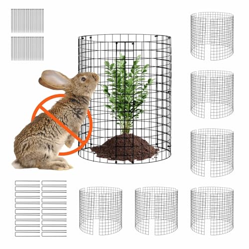 6 Pack Plant Protector from Animals, 13.5″ Dia x 14″ H Wire Plant Protectors, 18pcs Pre-Bent Metal Mesh to Keep Animals Out with Zip Ties & Stakes