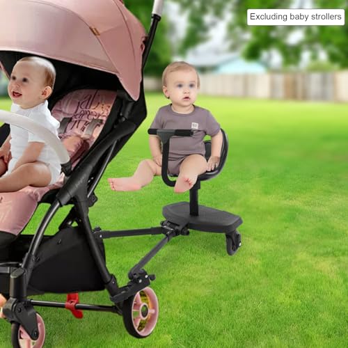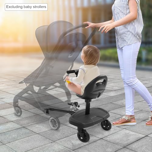 2 In1 Kiddy Board Stand or Seat,Pram Standing Board for Children Universal Baby Handcart Board Child Safety Ride Accessory, Compatible with Most Pushchairs for Toddlers and Kids Aged Two to Six