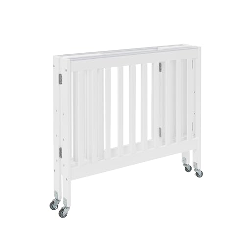3-in-1 Folding Baby Crib on Wheels – Solid Wood Space-Saving Baby Cot with Lockable Castors, 3 Adjustable Height Positions, Compact Folding Desig