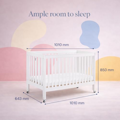 - MOVE IT EASILY, LOCK IT SAFELY – Smooth-rolling castors allow effortless room-to-room movement, while lockable wheels keep the crib secure and stable during sleep.
