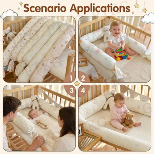- All-Round Protection: With a 13cm diameter, this pillow neatly covers bed edges, cushioning impacts when babies roll over or play. It effectively prevents tiny heads, arms and legs from getting stuck in bed rail gaps, safeguarding your baby's safe development. Lightweight and flexible, it can be easily rolled up and unfolded, making it convenient to carry for outings or travel.