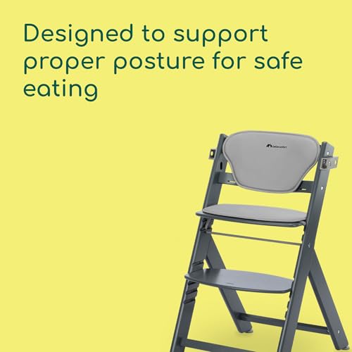 Bebeconfort Timba 2 with Cushion, Evolutive Wooden Highchair, 6+ Months, Up to 110 kg, Ergonomic Baby High Chair, Fits Most Dining Tables, Removable Tray, Grey Mis