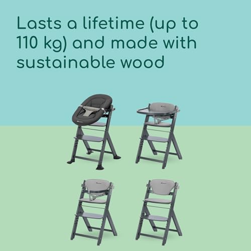 - MADE FROM SUSTAINABLE WOOD: with a fresh look and sturdy wooden build, the high chair is crafted from sustainably sourced rubberwood that ensures less waste, lower impact, and lasting durability