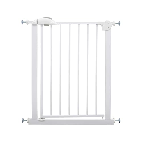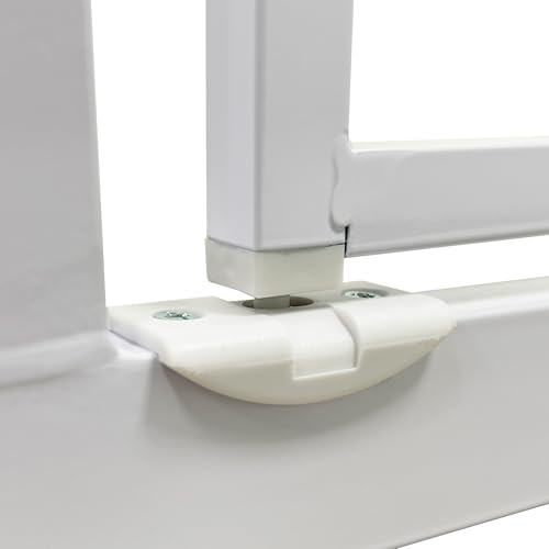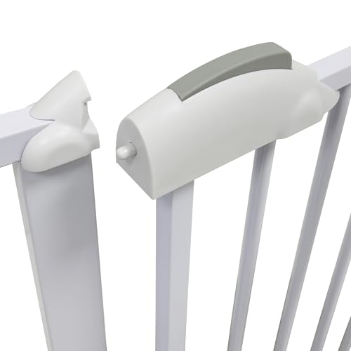 - Double Locking Mechanism: The gate features a two-step locking handle. To open, pull the button under the handle and squeeze the top section – designed to be simple for adults, but child-resistant for added peace of mind. One-Handed Operation: Convenient for busy parents, allowing you to open the gate even while carrying your child.