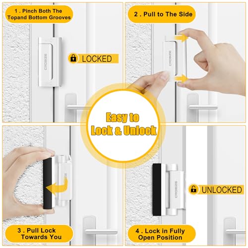 - Easy to Use – Groove design for easy opening of the door safety locks from the inside, especially in an emergency. Unlocking and locking can be completed within a second. No tools are required to open it, just a little practice. The most convenient and fast door security device. We offer a one-year free warranty on our products.