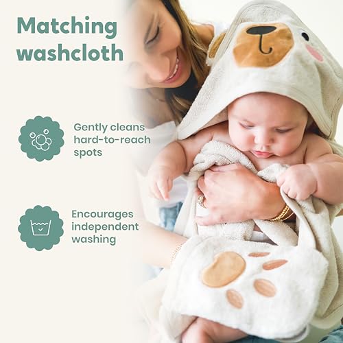 - COZY FROM TUB TO TOWEL – Turn bath time into bonding time with Cuddlebug's selection of Hooded Baby Towels with a Matching Baby Washcloth! Irresistibly soft and heart-meltingly adorable, this bear-themed baby bath set keeps your little one wonderfully warm, dry, and cozy from tub to towel.