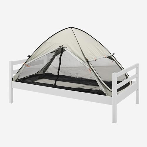 Deryan Luxe Bed Tent Pop Up Mosquito Net – 200 x 90 cm – Highest Quality Mosquito Net 1mm Mesh Size – Blackout – Ivory