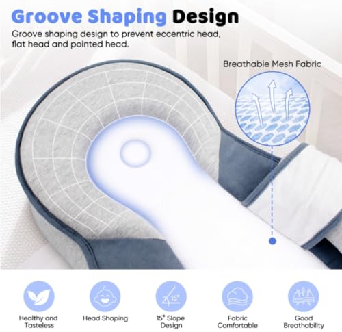 - Crafted with 7A antibacterial fabric and breathable mesh, this infant feeding support pillow keeps bacteria and mites at bay, safeguarding your baby’s delicate and sensitive skin. Its scientific ergonomic design prevents vomiting and protects the baby’s spine. The central groove effectively corrects head shape irregularities such as flat head or lopsided head. The high-resilience foam core delivers exceptional support. Boasting an X-90° hexagonal 3D hollow structure with over 1,000 ventilation holes, it forms a microcirculation system to keep your baby cool and comfortable at all times.