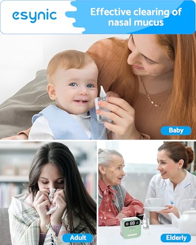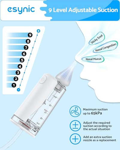 eSynic Professional Electric Nose Aspirator Rechargeable Baby Nasal Aspirator Toddler Nose Sucker Automatic Adults Nose Suction Supports 9 Suction Level&Led Light for Kids Elders etc