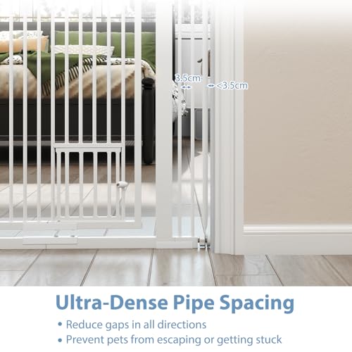 - Safe & Friendly Design: Our pet safety gate features easy-to-close safety lock and a bi-directional opening design (240°) for smooth access. Additionally, the close spacing between bars prevents kids from getting stuck or pets from escaping.