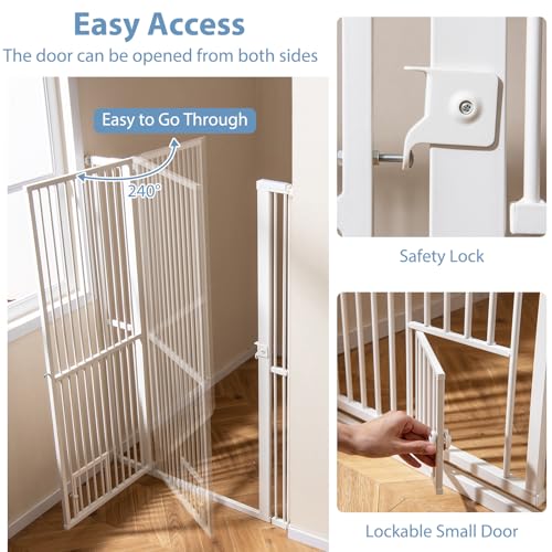 Extra Tall Pet Gate, Metal Dog Safety Gates with Lockable Small Door, 2