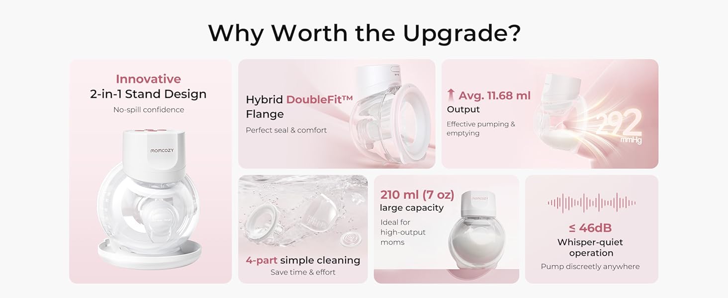 - Faster & More Efficient Pumping. Powerful -292 mmHg suction delivers up to 28.2% faster pumping and 6% more milk output than the previous model. (*Based on Momcozy Lab data)