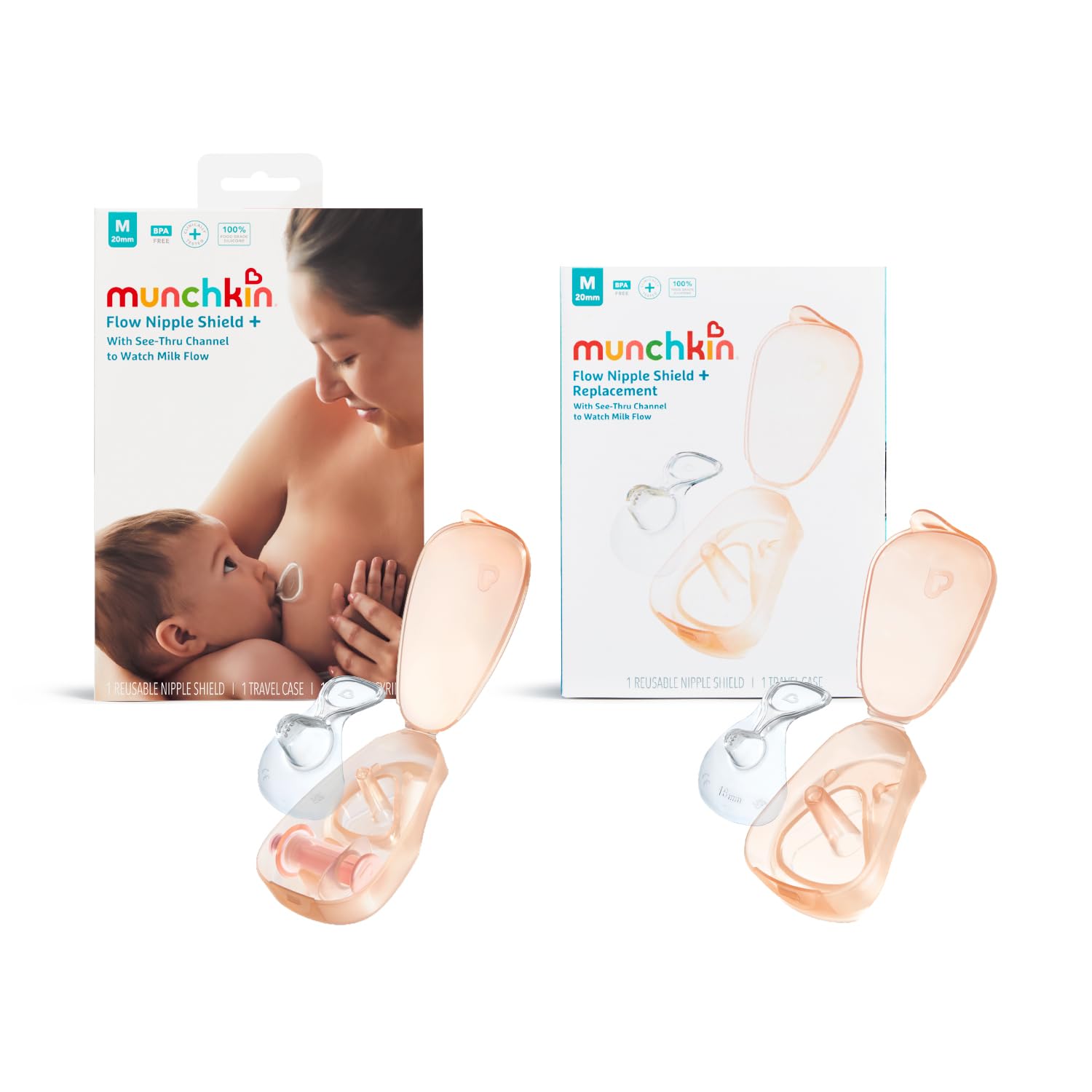 Munchkin Flow 20mm Nipple Shield+ 2 Pack| Nipple Shield+ and Replacement Kit | See Your Milk Flow While You Breastfeed | Breast Feeding & Baby Essentials | Duo Se