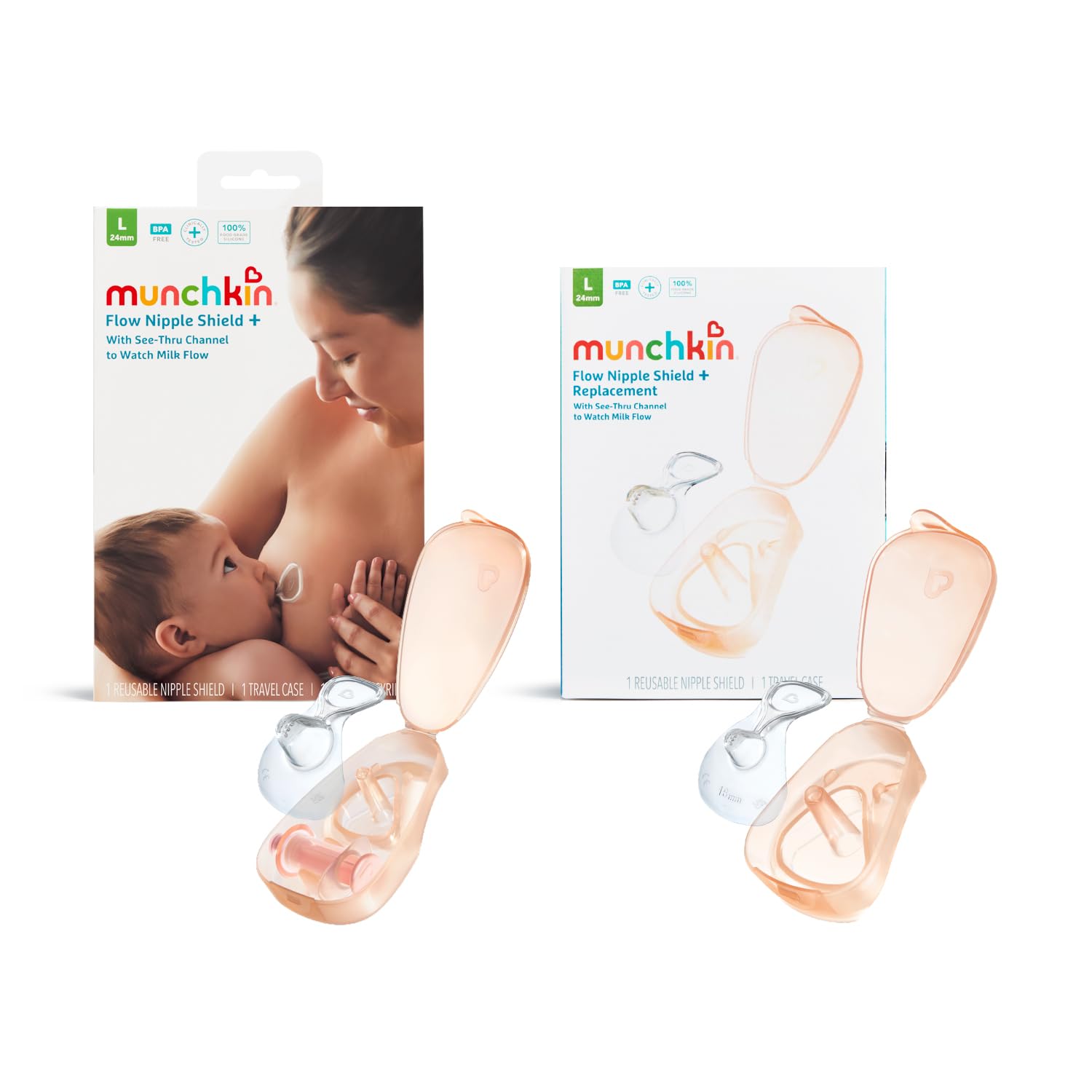 Munchkin Flow 24mm Nipple Shield+ 2 Pack| Nipple Shield+ and Replacement Kit | See Your Milk Flow While You Breastfeed | Breast Feeding & Baby Essentials | Duo Se