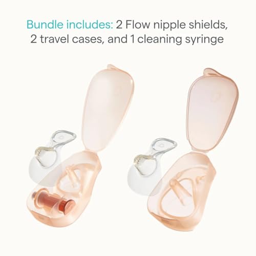- TWO NIPPLE SHIELDS FOR EVERYDAY CONVENIENCE: Flow Nipple Shield+ 2 pack includes 2 Flow Nipple Shields+, 2 carrying cases and one syringe