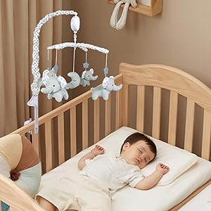 Transform your little kid's nursery into a soothing sanctuary with our Plush Elephant Musical Crib Mobile. The soft, skin-friendly toys catch 's attention, encouraging relaxation for a peaceful sleep. Easy to install and suitable for various settings, this mobile is crafted for 's playtime and bedtime bliss.