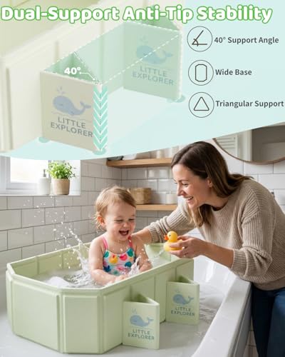 - DURABLE & EASY-CLEAN MATERIAL: Made from sturdy, child-safe plastic with smooth edges, this collapsible kids bathtub is durable, easy to clean, and comfortable for children during regular bathing.